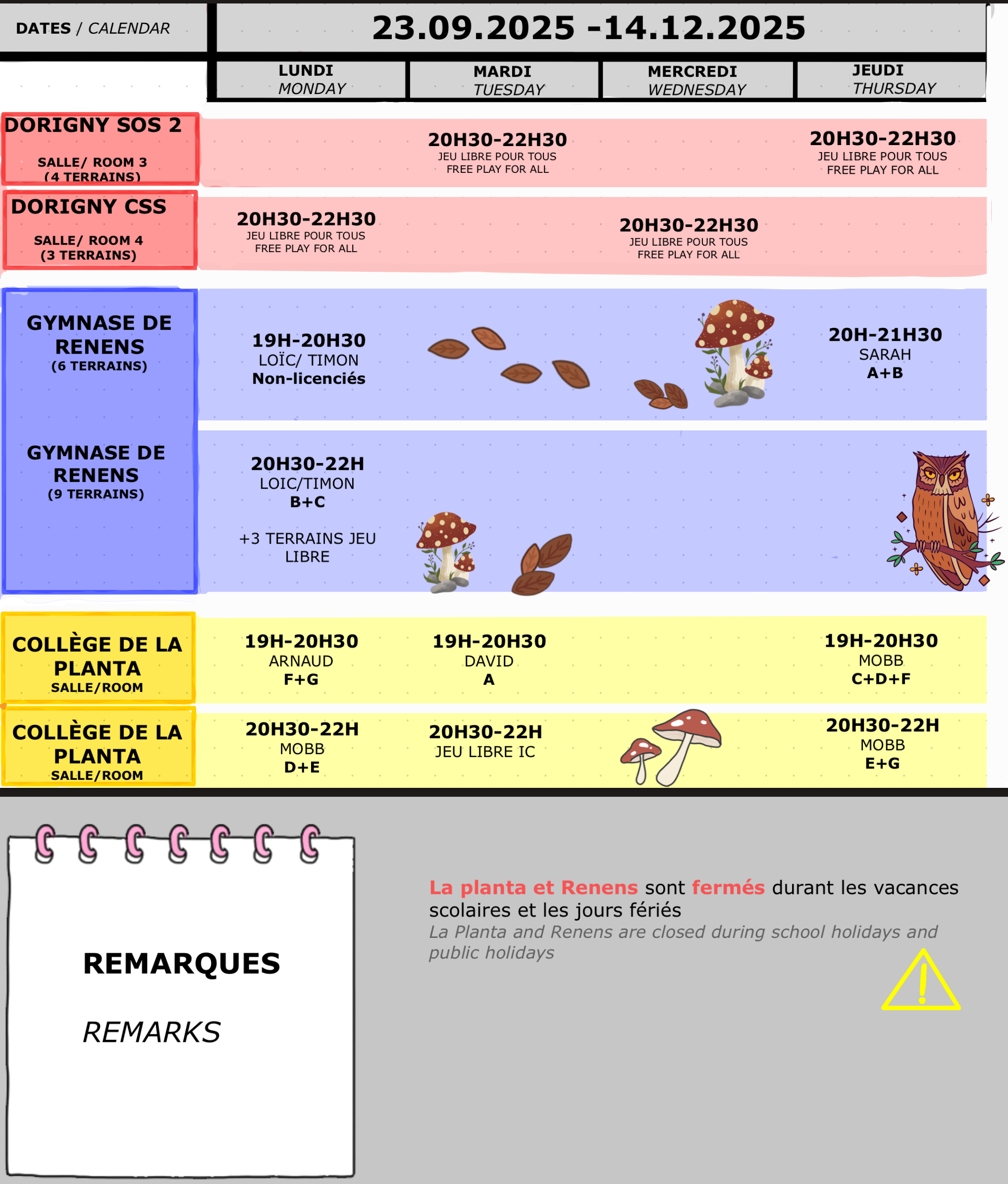 Playing sessions reserved exclusively for club members are scheduled at the times below: